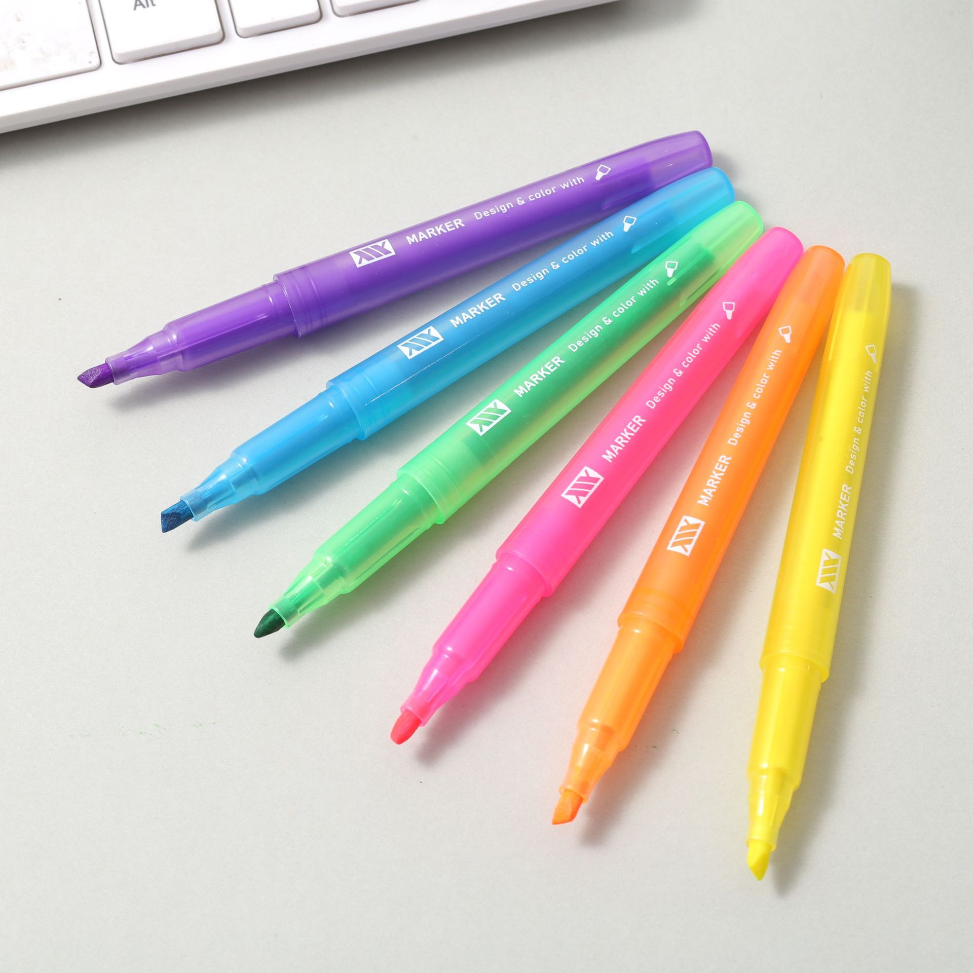 6色学生绘画彩色斜头荧光笔 可